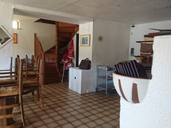 Au rez-de-chaussée se trouve une salle de restauration spacieuse, accompagnée d’une cuisine professionnelle entièrement équipée, prête à accueillir une activité de restauration, traiteur ou autre commerce de bouche.