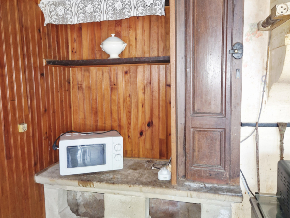 la maison est composée d’une cuisine avec un poele a bois, une salle d’eau avec douche, un wc, un grand séjour.