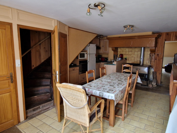cette belle maison de village de 106m2 habitables. Dès l’entrée, vous serez séduit par l’atmosphère chaleureuse qui règne dans cet espace de vie convivial. Au rez-de-chaussée, vous découvrirez une cuisine, ainsi qu’un salon/séjour spacieux, offrant un espace parfait pour se détendre ou recevoir vos proches. Au premier étage, un espace nuit vous attend, comprenant deux chambres, une salle d’eau et des toilettes. De plus, cette maison offre la possibilité d’aménager une troisième chambre selon vos besoins et vos envies. Située sur un terrain de 740m2, cette maison vous offre un cadre de vie exceptionnel. Vous pourrez profiter d’une cour fermée devant la maison, ainsi que d’un jardin clos et arboré à l’arrière, parfait pour les moments de détente en plein air.