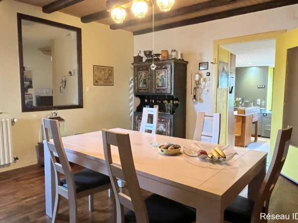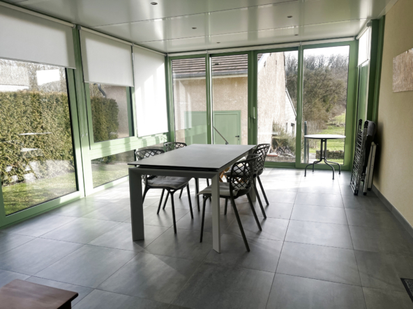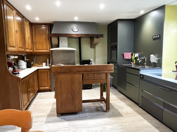 La cuisine s’ouvre sur une véranda, véritable écrin de lumière, offrant un panorama apaisant sur le parc arboré et les lisières boisées. Le salon, raffiné et convivial, invite à des instants de partage dans un cadre harmonieux.